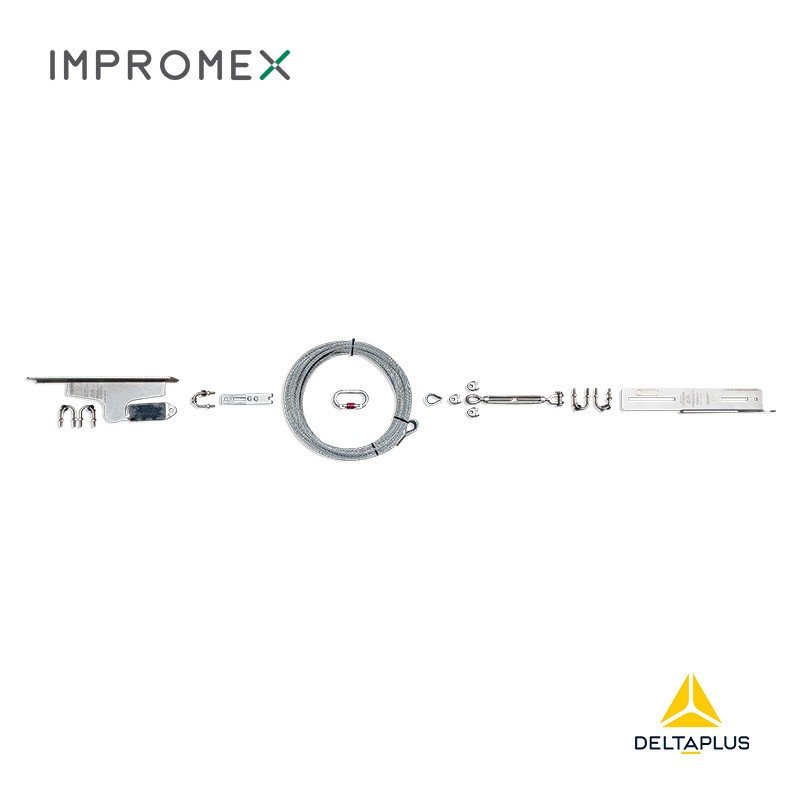 Línea de vida para escalera con amortiguador.