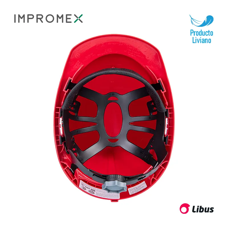 Banda frontal en tela sintética perforada para absorción de transpiración (sudadera); es desmontable y lavable.
