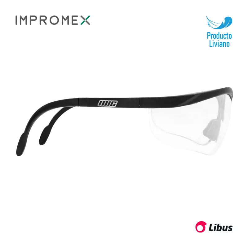 Su radio de curvatura y las patillas siguiéndola línea logran un calce perfecto a la cara y visión panorámica.