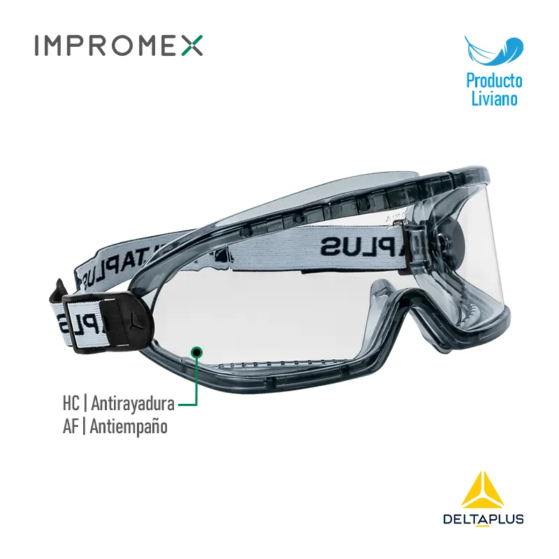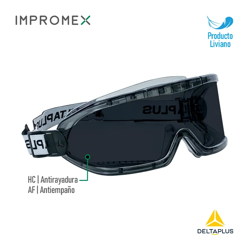 Mono lente de gran tamaño; presenta 2 pestañas que permiten moverlo a su posición de trabajo sobre los ojos o rebatirlo al interior del casco sin contacto con el campo de visión.