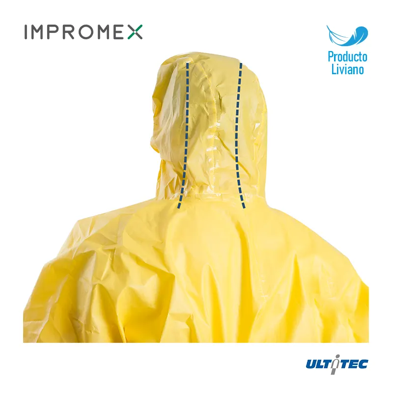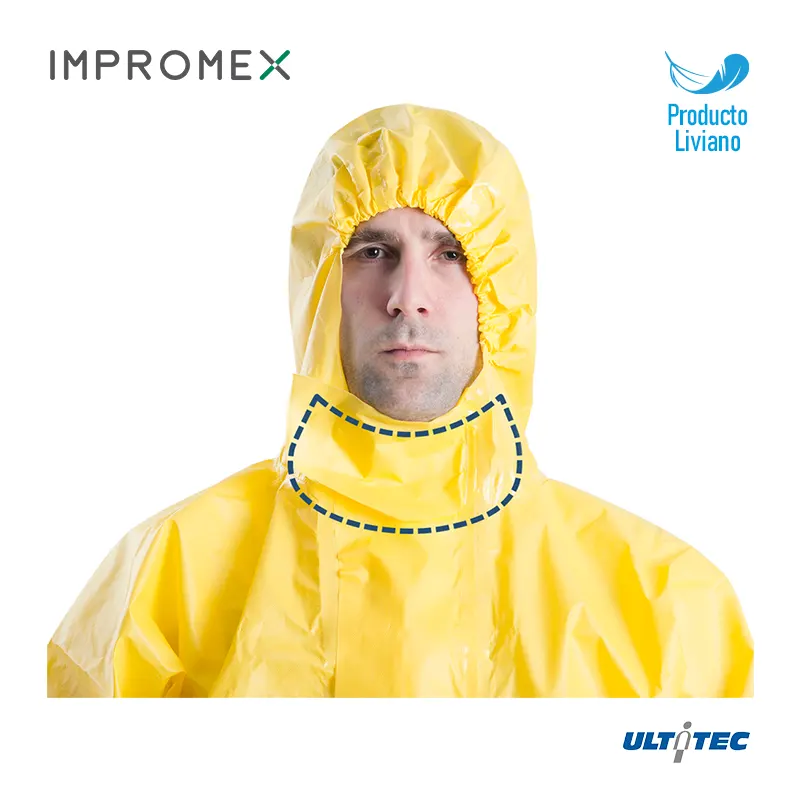 El cuidadoso diseño de la capucha se ajusta perfectamente al respirador, las solapas de doble capa aseguran un sellado perfecto para el cierre, y el brillante color amarillo de la tela proporciona una alta visibilidad. Estos diseños brindan una excelente protección al trabajar en ambientes peligrosos y poco iluminados.