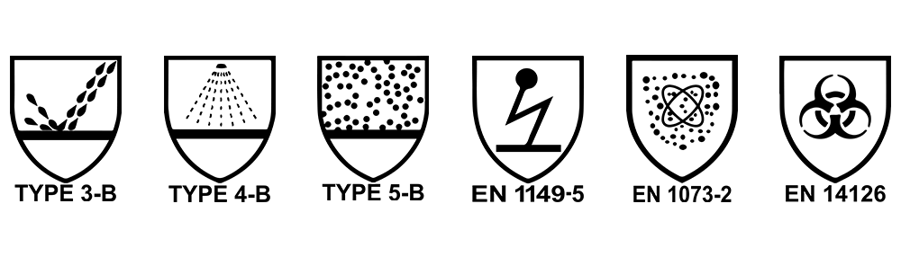 La tela impermeable especial alcanza el requerimiento más alto de la prueba biológica de EN14126. Todas las costuras están selladas por cintas a prueba de químicos, con lo que alcanzan el nivel de protección 3 y proveen una barrera efectiva contra chorros direccionales de líquidos a presión, diversos químicos, y riesgos biológicos.